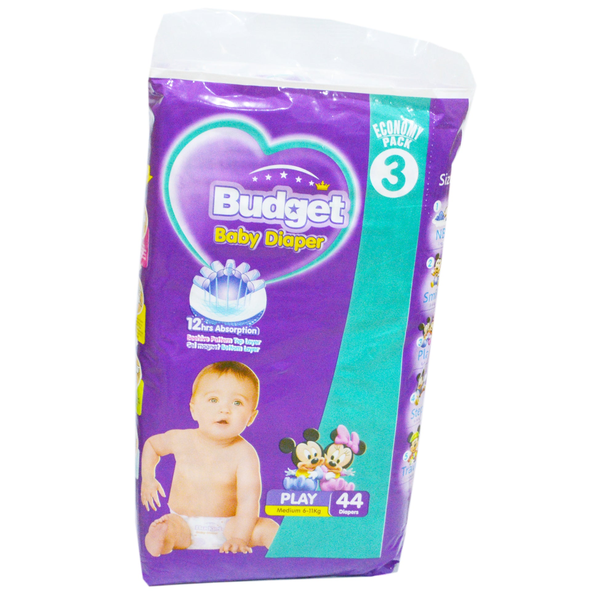 Babies aged 6 to 18 months, typically weighing 6-11 kg, can use Play Budget Economy Medium diapers. However, age may vary depending on each baby’s growth and size.